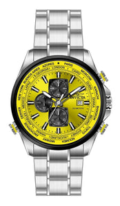 Band Material: Stainless Steel, Band Tone: Steel, Band Width: 26MM, Band Length: 180MM, Crown Type: Push, Case Material: Stainless Steel, Case Tone: Gunmetal,Steel, Case Size [mm]: 50, Case Back: Solid, Material of Hands: Brass, Color of Hands: White,Luminous,Gunmetal, Crystal Type: Mineral, Bezel Material: None, Dial Material: Brass, Dial Color: Yellow, Dial Pattern: Sun-ray Finish .Purchasing these parts and having a non-authorized repair center open your watch voids all manufacturing warranties. Invicta cannot guarantee the quality standards of an altered timepiece, the standard 3-year limited warranty on Invicta timepieces shall be invalid if the timepiece is serviced at any time by an unauthorized repair center. This includes battery replacements, which must be done at an Invicta authorized repair center in order to maintain the eligibility of the warranty. Please follow the link below to learn more about Invicta's warranty.https://cdn.invictawatch.com/www/files/invicta-warranty-2018.pdf