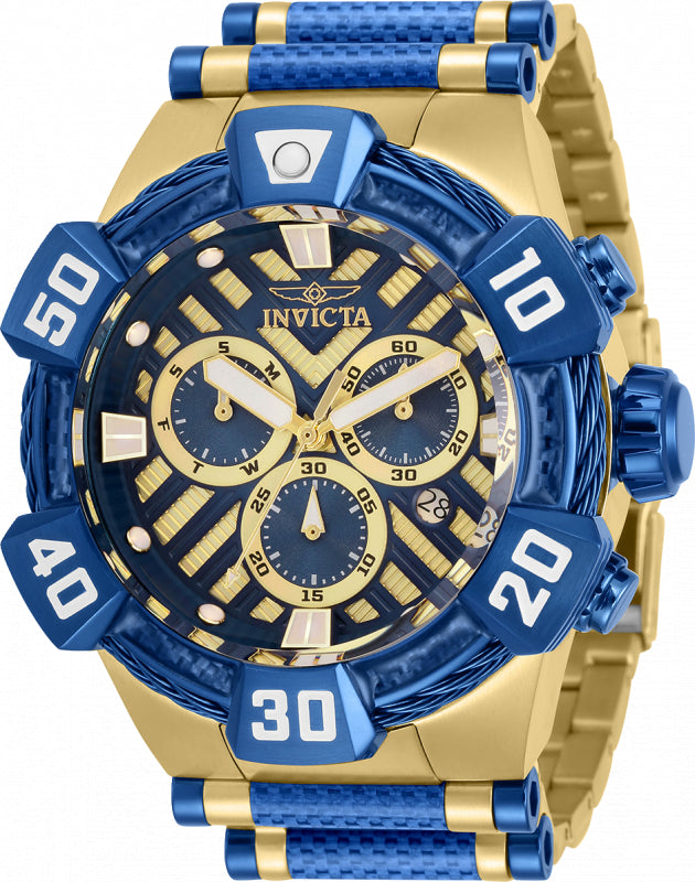 Band for Invicta Bolt 32283, , Band Material: Stainless Steel, Carbon Fiber, Band Tone: Gold, Blue, Band Size: 32mm, Band Length: 185mm, Buckle Type: Fold over safety, Clasp Type: Regular