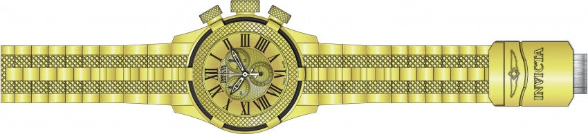 Band For Men Invicta Bolt 17163, Band Material Stainless Steel, Band Color Gold, Band Width 26 MM, Band Length 210 MM, Buckle Type Diver, Clasp Type Deployment, Safety. Please note that bands do not ship with spring bars or T bars. If you need these parts, please add them to your cart with the corresponding part sku.
