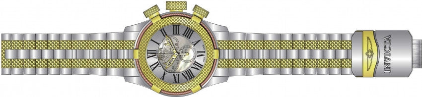 Band For Men Invicta Bolt 17435, Band Material Stainless Steel, Band Color Gold, Steel, Band Width 26 MM, Band Length 210 MM, Buckle Type Diver, Clasp Type Deployment, Safety. Please note that bands do not ship with spring bars or T bars. If you need these parts, please add them to your cart with the corresponding part sku.