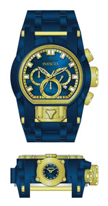 INVICTA Bolt Men 52mm Stainless Steel Gold + Dark Blue Blue+Gold dial VD53 Quartz , Band Material: Stainless Steel, Band Tone: Gold,Dark Blue, Band Size [mm]: 34, Band Length [mm]: 210, Buckle Type: Fold over safety , Crown Type : Screw Down,Push, Case Material : Stainless Steel, Case Tone : Gold,Dark Blue, Case Size (mm) : 52, Case Back : Solid, Material of Hands : Metal, Color of Hands : Gold,Luminous, Crystal Type : Mineral, Bezel Material : Stainless Steel, Dial Material : Metal,Mother of Pearl,Oyster, Dial Color : Blue,Gold, Dial Pattern : Textured Pattern .Purchasing these parts and having a non-authorized repair center open your watch voids all manufacturing warranties. Invicta cannot guarantee the quality standards of an altered timepiece, the standard 3-year limited warranty on Invicta timepieces shall be invalid if the timepiece is serviced at any time by an unauthorized repair center. This includes battery replacements, which must be done at an Invicta authorized repair center in order to maintain the eligibility of the warranty. Please follow the link below to learn more about Invicta's warranty.https://cdn.invictawatch.com/www/files/invicta-warranty-2018.pdf