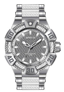 Band Material: Stainless Steel,Glass Fiber, Band Tone: Steel,White, Band Width: 32MM, Band Length: 190MM, Crown Type: Push, Case Material: Stainless Steel, Case Tone: Steel, Case Size [mm]: 52, Case Back: Exhibition, Material of Hands: Metal, Color of Hands: Silver, Crystal Type: Flame Fusion, Bezel Material: Stainless Steel,Glass Fiber,Cable, Dial Material: Carbon Fiber, Dial Color: Grey .Purchasing these parts and having a non-authorized repair center open your watch voids all manufacturing warranties. Invicta cannot guarantee the quality standards of an altered timepiece, the standard 3-year limited warranty on Invicta timepieces shall be invalid if the timepiece is serviced at any time by an unauthorized repair center. This includes battery replacements, which must be done at an Invicta authorized repair center in order to maintain the eligibility of the warranty. Please follow the link below to learn more about Invicta's warranty.https://cdn.invictawatch.com/www/files/invicta-warranty-2018.pdf