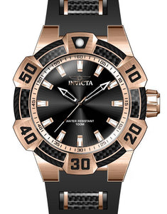 Band Material: Silicone,Carbon Fiber, Band Tone: Black, Band Width: 30MM, Band Length: 210MM, Crown Type: Push, Case Material: Stainless Steel, Case Tone: Rose Gold, Case Size [mm]: 52, Case Back: Exhibition, Material of Hands: Metal, Color of Hands: Black,Rose Gold, Crystal Type: Flame Fusion, Bezel Material: Stainless Steel,Carbon Fiber,Cable, Dial Material: Metal, Dial Color: Black .Purchasing these parts and having a non-authorized repair center open your watch voids all manufacturing warranties. Invicta cannot guarantee the quality standards of an altered timepiece, the standard 3-year limited warranty on Invicta timepieces shall be invalid if the timepiece is serviced at any time by an unauthorized repair center. This includes battery replacements, which must be done at an Invicta authorized repair center in order to maintain the eligibility of the warranty. Please follow the link below to learn more about Invicta's warranty.https://cdn.invictawatch.com/www/files/invicta-warranty-2018.pdf