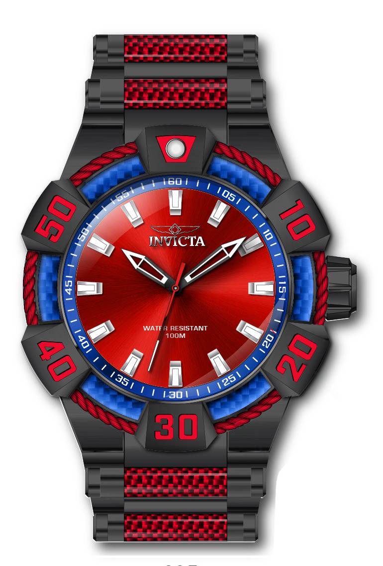 Band Material: Stainless Steel,Glass Fiber, Band Tone: Blue,Red, Band Width: 32MM, Band Length: 190MM, Crown Type: Push, Case Material: Stainless Steel, Case Tone: Black, Case Size [mm]: 52, Case Back: Exhibition, Material of Hands: Metal, Color of Hands: Black,Red, Crystal Type: Flame Fusion, Bezel Material: Stainless Steel,Glass Fiber,Cable, Dial Material: Metal, Dial Color: Red .Purchasing these parts and having a non-authorized repair center open your watch voids all manufacturing warranties. Invicta cannot guarantee the quality standards of an altered timepiece, the standard 3-year limited warranty on Invicta timepieces shall be invalid if the timepiece is serviced at any time by an unauthorized repair center. This includes battery replacements, which must be done at an Invicta authorized repair center in order to maintain the eligibility of the warranty. Please follow the link below to learn more about Invicta's warranty.https://cdn.invictawatch.com/www/files/invicta-warranty-2018.pdf