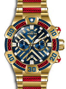 Band Material: Stainless Steel,Glass Fiber, Band Tone: Gold,Red, Band Width: 32MM, Band Length: 210MM, Crown Type: Push, Case Material: Stainless Steel, Case Tone: Gold, Case Size [mm]: 52, Case Back: Solid, Material of Hands: Metal, Color of Hands: Gold, Crystal Type: Flame Fusion, Bezel Material: Stainless Steel,Glass Fiber,Cable, Dial Material: Metal, Dial Color: Blue,Gold .Purchasing these parts and having a non-authorized repair center open your watch voids all manufacturing warranties. Invicta cannot guarantee the quality standards of an altered timepiece, the standard 3-year limited warranty on Invicta timepieces shall be invalid if the timepiece is serviced at any time by an unauthorized repair center. This includes battery replacements, which must be done at an Invicta authorized repair center in order to maintain the eligibility of the warranty. Please follow the link below to learn more about Invicta's warranty.https://cdn.invictawatch.com/www/files/invicta-warranty-2018.pdf