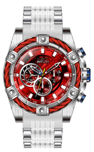 Band Material: Stainless Steel,Silicone, Band Tone: Steel,White, Band Width: 26MM, Band Length: 200MM, Crown Type: Push, Case Material: Stainless Steel, Case Tone: Steel, Case Size [mm]: 52, Case Back: Solid, Material of Hands: Metal, Color of Hands: Black,Silver,Blue,Red,Yellow, Crystal Type: Flame Fusion, Bezel Material: Stainless Steel,Cable, Dial Material: Metal, Dial Color: Red, Dial Pattern: Sun-ray Finish .Purchasing these parts and having a non-authorized repair center open your watch voids all manufacturing warranties. Invicta cannot guarantee the quality standards of an altered timepiece, the standard 3-year limited warranty on Invicta timepieces shall be invalid if the timepiece is serviced at any time by an unauthorized repair center. This includes battery replacements, which must be done at an Invicta authorized repair center in order to maintain the eligibility of the warranty. Please follow the link below to learn more about Invicta's warranty.https://cdn.invictawatch.com/www/files/invicta-warranty-2018.pdf