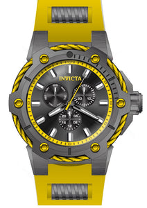 Band Material: Stainless Steel,Silicone, Band Tone: Gunmetal,Yellow, Band Width: 30MM, Band Length: 210MM, Crown Type: Push, Case Material: Stainless Steel, Case Tone: Gunmetal, Case Size [mm]: 51.5, Case Back: Solid, Material of Hands: Metal, Color of Hands: Yellow,Grey, Crystal Type: Flame Fusion, Bezel Material: Stainless Steel,Cable, Dial Material: Metal, Dial Color: Black, Dial Pattern: None .Purchasing these parts and having a non-authorized repair center open your watch voids all manufacturing warranties. Invicta cannot guarantee the quality standards of an altered timepiece, the standard 3-year limited warranty on Invicta timepieces shall be invalid if the timepiece is serviced at any time by an unauthorized repair center. This includes battery replacements, which must be done at an Invicta authorized repair center in order to maintain the eligibility of the warranty. Please follow the link below to learn more about Invicta's warranty.https://cdn.invictawatch.com/www/files/invicta-warranty-2018.pdf