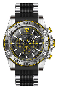 Band Material: Stainless Steel,Silicone, Band Tone: Steel,Black, Band Width: 26MM, Band Length: 210MM, Crown Type: Push, Case Material: Stainless Steel, Case Tone: Steel, Case Size [mm]: 52, Case Back: Solid, Material of Hands: Metal, Color of Hands: Black,Yellow, Crystal Type: Flame Fusion, Bezel Material: Stainless Steel,Cable, Dial Material: Metal, Dial Color: Black, Dial Pattern: None .Purchasing these parts and having a non-authorized repair center open your watch voids all manufacturing warranties. Invicta cannot guarantee the quality standards of an altered timepiece, the standard 3-year limited warranty on Invicta timepieces shall be invalid if the timepiece is serviced at any time by an unauthorized repair center. This includes battery replacements, which must be done at an Invicta authorized repair center in order to maintain the eligibility of the warranty. Please follow the link below to learn more about Invicta's warranty.https://cdn.invictawatch.com/www/files/invicta-warranty-2018.pdf
