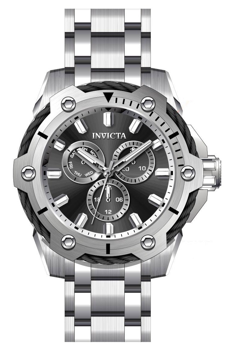 Band Material: Stainless Steel, Band Tone: Steel, Band Width: 24MM, Band Length: 210MM, Crown Type: Push, Case Material: Stainless Steel, Case Tone: Steel, Case Size [mm]: 53, Case Back: Solid, Material of Hands: Metal, Color of Hands: Silver, Crystal Type: Flame Fusion, Bezel Material: Stainless Steel,Cable, Dial Material: Metal, Dial Color: Black, Dial Pattern: None .Purchasing these parts and having a non-authorized repair center open your watch voids all manufacturing warranties. Invicta cannot guarantee the quality standards of an altered timepiece, the standard 3-year limited warranty on Invicta timepieces shall be invalid if the timepiece is serviced at any time by an unauthorized repair center. This includes battery replacements, which must be done at an Invicta authorized repair center in order to maintain the eligibility of the warranty. Please follow the link below to learn more about Invicta's warranty.https://cdn.invictawatch.com/www/files/invicta-warranty-2018.pdf