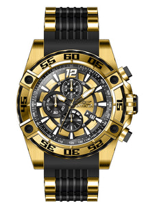 Band Material: Stainless Steel,Silicone, Band Tone: Gold,Black, Band Width: 26MM, Band Length: 200MM, Crown Type: Push, Case Material: Stainless Steel, Case Tone: Gold, Case Size [mm]: 52, Case Back: Solid, Material of Hands: Metal, Color of Hands: Black,Gold, Crystal Type: Flame Fusion, Bezel Material: Stainless Steel,Cable, Dial Material: Metal, Dial Color: Black,Gold, Dial Pattern: Sun-ray Finish .Purchasing these parts and having a non-authorized repair center open your watch voids all manufacturing warranties. Invicta cannot guarantee the quality standards of an altered timepiece, the standard 3-year limited warranty on Invicta timepieces shall be invalid if the timepiece is serviced at any time by an unauthorized repair center. This includes battery replacements, which must be done at an Invicta authorized repair center in order to maintain the eligibility of the warranty. Please follow the link below to learn more about Invicta's warranty.https://cdn.invictawatch.com/www/files/invicta-warranty-2018.pdf
