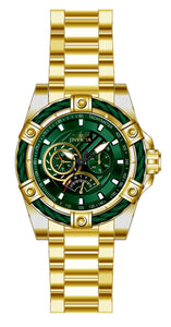 Band Material: Stainless Steel, Band Tone: Gold, Band Width: 26MM, Band Length: 185MM, Crown Type: Push, Case Material: Stainless Steel, Case Tone: Gold, Case Size [mm]: 52, Crystal Type: Flame Fusion, Dial Material: Brass, Dial Color: Green .Purchasing these parts and having a non-authorized repair center open your watch voids all manufacturing warranties. Invicta cannot guarantee the quality standards of an altered timepiece, the standard 3-year limited warranty on Invicta timepieces shall be invalid if the timepiece is serviced at any time by an unauthorized repair center. This includes battery replacements, which must be done at an Invicta authorized repair center in order to maintain the eligibility of the warranty. Please follow the link below to learn more about Invicta's warranty.https://cdn.invictawatch.com/www/files/invicta-warranty-2018.pdf