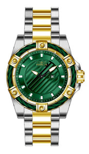 Band Material: Stainless Steel, Band Tone: Steel,Gold, Band Width: 26MM, Band Length: 185MM, Crown Type: Push, Case Material: Stainless Steel, Case Tone: Steel, Case Size [mm]: 52, Crystal Type: Flame Fusion, Dial Material: Brass, Dial Color: Gold,Green .Purchasing these parts and having a non-authorized repair center open your watch voids all manufacturing warranties. Invicta cannot guarantee the quality standards of an altered timepiece, the standard 3-year limited warranty on Invicta timepieces shall be invalid if the timepiece is serviced at any time by an unauthorized repair center. This includes battery replacements, which must be done at an Invicta authorized repair center in order to maintain the eligibility of the warranty. Please follow the link below to learn more about Invicta's warranty.https://cdn.invictawatch.com/www/files/invicta-warranty-2018.pdf