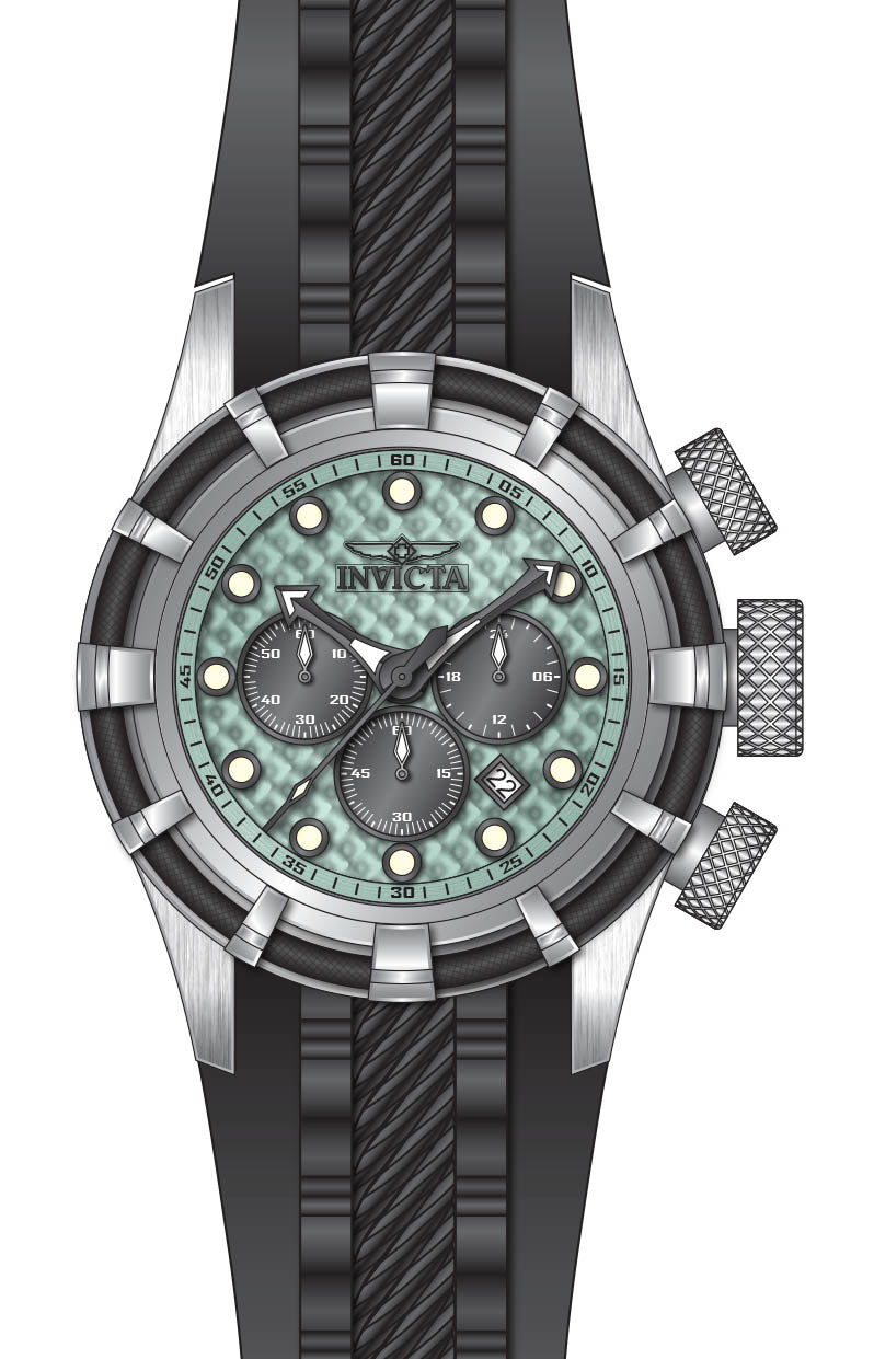 Band Material: Silicone, Band Tone: Black, Band Width: 32MM, Band Length: 210MM, Crown Type: Push, Case Material: Stainless Steel, Case Tone: Black,Steel, Case Size [mm]: 50.0, Case Back: Solid screwed, Material of Hands: Metal, Color of Hands: Luminous,Gunmetal, Crystal Type: Mineral, Bezel Material: Stainless Steel, Dial Material: Metal, Dial Color: Grey,Tiffany Blue, Dial Pattern: Textured Pattern .Purchasing these parts and having a non-authorized repair center open your watch voids all manufacturing warranties. Invicta cannot guarantee the quality standards of an altered timepiece, the standard 3-year limited warranty on Invicta timepieces shall be invalid if the timepiece is serviced at any time by an unauthorized repair center. This includes battery replacements, which must be done at an Invicta authorized repair center in order to maintain the eligibility of the warranty. Please follow the link below to learn more about Invicta's warranty.https://cdn.invictawatch.com/www/files/invicta-warranty-2018.pdf
