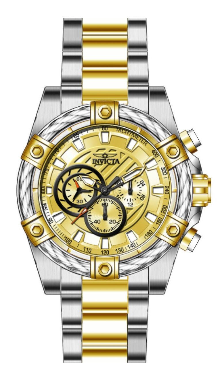 Band Material: Stainless Steel, Band Tone: Steel,Gold, Band Width: 26MM, Band Length: 200MM, Crown Type: Push, Case Material: Stainless Steel, Case Tone: Gold,Steel, Case Size [mm]: 52, Case Back: Solid, Material of Hands: Brass, Color of Hands: Black,Gold,Orange,Luminous, Crystal Type: Mineral, Bezel Material: Stainless Steel,Cable, Dial Material: Metal, Dial Color: Gold, Dial Pattern: Sun-ray Finish .Purchasing these parts and having a non-authorized repair center open your watch voids all manufacturing warranties. Invicta cannot guarantee the quality standards of an altered timepiece, the standard 3-year limited warranty on Invicta timepieces shall be invalid if the timepiece is serviced at any time by an unauthorized repair center. This includes battery replacements, which must be done at an Invicta authorized repair center in order to maintain the eligibility of the warranty. Please follow the link below to learn more about Invicta's warranty.https://cdn.invictawatch.com/www/files/invicta-warranty-2018.pdf