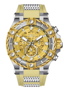 Band Material: Stainless Steel,Silicone, Band Tone: Steel,Ivory, Band Width: 31MM, Band Length: 220MM, Crown Type: Push, Case Material: Stainless Steel, Case Tone: Steel, Case Size [mm]: 52, Case Back: Solid, Material of Hands: Metal, Color of Hands: Silver,Brown,Luminous, Crystal Type: Flame Fusion, Bezel Material: Stainless Steel,Cable, Dial Material: Metal, Dial Color: Gold, Dial Pattern: Sandblast Finish .Purchasing these parts and having a non-authorized repair center open your watch voids all manufacturing warranties. Invicta cannot guarantee the quality standards of an altered timepiece, the standard 3-year limited warranty on Invicta timepieces shall be invalid if the timepiece is serviced at any time by an unauthorized repair center. This includes battery replacements, which must be done at an Invicta authorized repair center in order to maintain the eligibility of the warranty. Please follow the link below to learn more about Invicta's warranty.https://cdn.invictawatch.com/www/files/invicta-warranty-2018.pdf