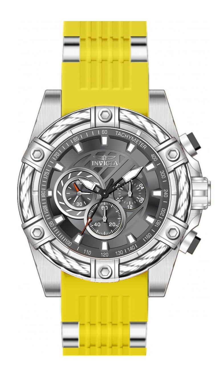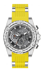 Band Material: Stainless Steel,Silicone, Band Tone: Steel,Yellow, Band Width: 26MM, Band Length: 200MM, Crown Type: Push, Case Material: Stainless Steel, Case Tone: Steel, Case Size [mm]: 52, Case Back: Solid, Material of Hands: Brass, Color of Hands: Black,Silver,Red,Luminous, Crystal Type: Flame Fusion, Bezel Material: Stainless Steel,Cable, Dial Material: Brass, Dial Color: Charcoal, Dial Pattern: Sun-ray Finish .Purchasing these parts and having a non-authorized repair center open your watch voids all manufacturing warranties. Invicta cannot guarantee the quality standards of an altered timepiece, the standard 3-year limited warranty on Invicta timepieces shall be invalid if the timepiece is serviced at any time by an unauthorized repair center. This includes battery replacements, which must be done at an Invicta authorized repair center in order to maintain the eligibility of the warranty. Please follow the link below to learn more about Invicta's warranty.https://cdn.invictawatch.com/www/files/invicta-warranty-2018.pdf