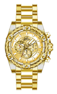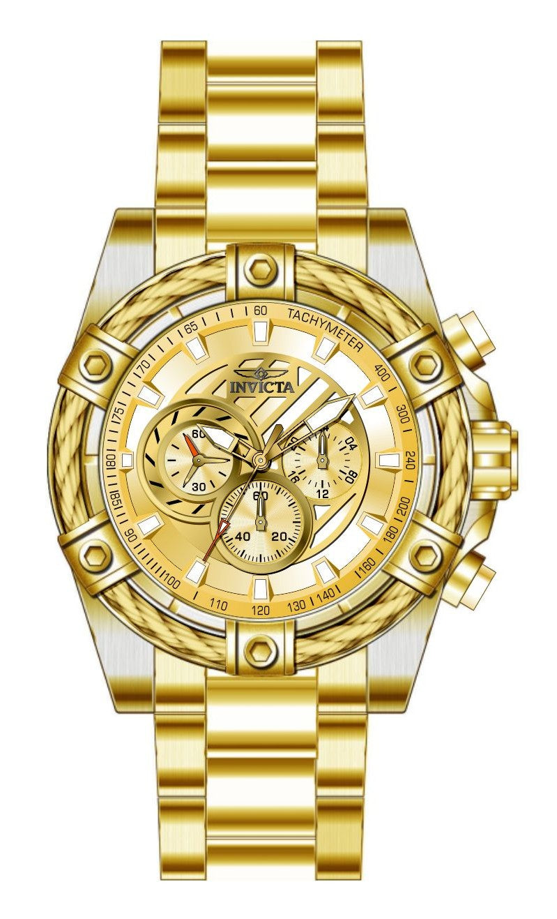 Band Material: Stainless Steel, Band Tone: Gold, Band Width: 26MM, Band Length: 200MM, Crown Type: Push, Case Material: Stainless Steel, Case Tone: Gold, Case Size [mm]: 52, Case Back: Solid, Material of Hands: Brass, Color of Hands: Gold,Orange,Luminous, Crystal Type: Mineral, Bezel Material: Stainless Steel,Cable, Dial Material: Metal, Dial Color: Gold, Dial Pattern: Sun-ray Finish .Purchasing these parts and having a non-authorized repair center open your watch voids all manufacturing warranties. Invicta cannot guarantee the quality standards of an altered timepiece, the standard 3-year limited warranty on Invicta timepieces shall be invalid if the timepiece is serviced at any time by an unauthorized repair center. This includes battery replacements, which must be done at an Invicta authorized repair center in order to maintain the eligibility of the warranty. Please follow the link below to learn more about Invicta's warranty.https://cdn.invictawatch.com/www/files/invicta-warranty-2018.pdf