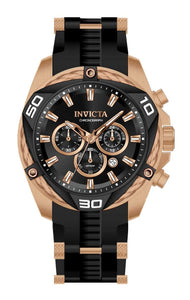 Band Material: Stainless Steel,Silicone, Band Tone: Rose Gold,Black, Band Width: 26MM, Band Length: 210MM, Crown Type: Push, Case Material: Stainless Steel, Case Tone: Rose Gold, Case Size [mm]: 50, Case Back: Solid, Material of Hands: Metal, Color of Hands: Rose Gold,Luminous, Crystal Type: Mineral, Bezel Material: Stainless Steel,Cable, Dial Material: Metal, Dial Color: Black, Dial Pattern: Sun-ray Finish .Purchasing these parts and having a non-authorized repair center open your watch voids all manufacturing warranties. Invicta cannot guarantee the quality standards of an altered timepiece, the standard 3-year limited warranty on Invicta timepieces shall be invalid if the timepiece is serviced at any time by an unauthorized repair center. This includes battery replacements, which must be done at an Invicta authorized repair center in order to maintain the eligibility of the warranty. Please follow the link below to learn more about Invicta's warranty.https://cdn.invictawatch.com/www/files/invicta-warranty-2018.pdf