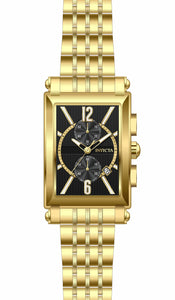 INVICTA Cuadro Men 35mm Stainless Steel Gold Black dial VD51 Quartz , Band Material: Stainless Steel, Band Tone: Gold, Band Size [mm]: 22, Band Length [mm]: 220, Buckle Type: Butterfly push button , Crown Type : Push, Case Material : Stainless Steel, Case Tone : Gold, Case Size (mm) : 35, Case Back : Solid, Material of Hands : Metal, Color of Hands : Gold,Luminous, Crystal Type : Mineral, Bezel Material : None, Dial Material : Metal, Dial Color : Black, Dial Pattern : Textured Pattern .Purchasing these parts and having a non-authorized repair center open your watch voids all manufacturing warranties. Invicta cannot guarantee the quality standards of an altered timepiece, the standard 3-year limited warranty on Invicta timepieces shall be invalid if the timepiece is serviced at any time by an unauthorized repair center. This includes battery replacements, which must be done at an Invicta authorized repair center in order to maintain the eligibility of the warranty. Please follow the link below to learn more about Invicta's warranty.https://cdn.invictawatch.com/www/files/invicta-warranty-2018.pdf