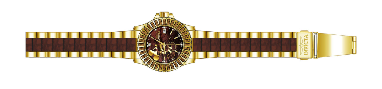 Individual Spare PARTS For Invicta Disney Limited Edition 27277, Band Material: Stainless Steel, Tortoise, Band Tone: Gold, Brown, Band size in mm: 20, Band Length in mm: 170, Buckle Type: Regular, Clasp Type: Regular, Crown Type Push, Case Material Stainless Steel, Case Tone Gold, Case Size (mm) 38, Case Back Solid, Material of Hands Metal, Color of Hands Gold, Crystal Type Flame Fusion, Bezel Material Stainless Steel, Crystal, Dial Material Oyster, Dial Color Brown, Dial Pattern NonePurchasing these parts and having a non-authorized repair center open your watch voids all manufacturing warranties. Invicta cannot guarantee the quality standards of an altered timepiece, the standard 3-year limited warranty on Invicta timepieces shall be invalid if the timepiece is serviced at any time by an unauthorized repair center. This includes battery replacements, which must be done at an Invicta authorized repair center in order to maintain the eligibility of the warranty. Please follow the link below to learn more about Invicta's warranty.https://cdn.invictawatch.com/www/files/invicta-warranty-2018.pdf