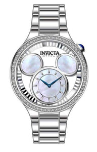 INVICTA Disney Limited Edition Lady 35mm Stainless Steel Silver White dial PC10 Quartz , Band Material: Stainless Steel, Band Tone: Steel, Band Size [mm]: 16, Band Length [mm]: 175, Buckle Type: Fold over push button , Crown Type : Push, Case Material : Stainless Steel, Case Tone : Silver, Case Size (mm) : 35, Case Back : Solid, Material of Hands : Metal, Color of Hands : Blue, Crystal Type : Flame Fusion, Bezel Material : Stainless Steel, Dial Material : Metal,Mother of Pearl, Dial Color : White .Purchasing these parts and having a non-authorized repair center open your watch voids all manufacturing warranties. Invicta cannot guarantee the quality standards of an altered timepiece, the standard 3-year limited warranty on Invicta timepieces shall be invalid if the timepiece is serviced at any time by an unauthorized repair center. This includes battery replacements, which must be done at an Invicta authorized repair center in order to maintain the eligibility of the warranty. Please follow the link below to learn more about Invicta's warranty.https://cdn.invictawatch.com/www/files/invicta-warranty-2018.pdf