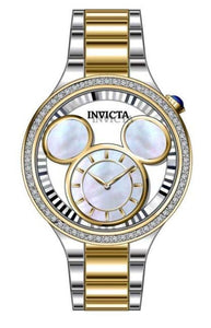 INVICTA Disney Limited Edition Lady 35mm Stainless Steel Silver White dial PC10 Quartz , Band Material: Stainless Steel, Band Tone: Steel,Gold, Band Size [mm]: 16, Band Length [mm]: 175, Buckle Type: Fold over push button , Crown Type : Push, Case Material : Stainless Steel, Case Tone : Silver, Case Size (mm) : 35, Case Back : Solid, Material of Hands : Metal, Color of Hands : Gold, Crystal Type : Flame Fusion, Bezel Material : Stainless Steel, Dial Material : Metal,Mother of Pearl, Dial Color : White .Purchasing these parts and having a non-authorized repair center open your watch voids all manufacturing warranties. Invicta cannot guarantee the quality standards of an altered timepiece, the standard 3-year limited warranty on Invicta timepieces shall be invalid if the timepiece is serviced at any time by an unauthorized repair center. This includes battery replacements, which must be done at an Invicta authorized repair center in order to maintain the eligibility of the warranty. Please follow the link below to learn more about Invicta's warranty.https://cdn.invictawatch.com/www/files/invicta-warranty-2018.pdf