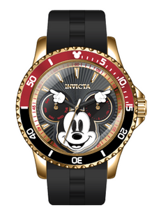 INVICTA Disney Limited Edition Lady 40mm Stainless Steel Gold Black+Red+Gold dial VH64 Quartz , Band Material: Silicone, Band Tone: Black, Band Size [mm]: 20, Band Length [mm]: 200, Buckle Type: Buckle , Crown Type : Push, Case Material : Stainless Steel, Case Tone : Gold, Case Size (mm) : 40, Case Back : Solid, Material of Hands : Metal, Color of Hands : Black,White,Gold, Crystal Type : Flame Fusion, Bezel Material : Stainless Steel, Dial Material : Metal, Dial Color : Black,Red,Gold .Purchasing these parts and having a non-authorized repair center open your watch voids all manufacturing warranties. Invicta cannot guarantee the quality standards of an altered timepiece, the standard 3-year limited warranty on Invicta timepieces shall be invalid if the timepiece is serviced at any time by an unauthorized repair center. This includes battery replacements, which must be done at an Invicta authorized repair center in order to maintain the eligibility of the warranty. Please follow the link below to learn more about Invicta's warranty.https://cdn.invictawatch.com/www/files/invicta-warranty-2018.pdf