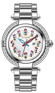 INVICTA Disney Limited Edition Lady 40mm Stainless Steel Steel White dial PC22A Quartz , Band Material: Stainless Steel, Band Tone: Steel, Band Size [mm]: 20, Band Length [mm]: 175, Buckle Type: Fold over push button , Crown Type : Push, Case Material : Stainless Steel, Case Tone : Steel, Case Size (mm) : 40, Case Back : Solid, Material of Hands : Metal, Color of Hands : Silver,Blue,Red, Crystal Type : Flame Fusion, Bezel Material : Stainless Steel,Cable, Dial Material : Mother of Pearl, Dial Color : White .Purchasing these parts and having a non-authorized repair center open your watch voids all manufacturing warranties. Invicta cannot guarantee the quality standards of an altered timepiece, the standard 3-year limited warranty on Invicta timepieces shall be invalid if the timepiece is serviced at any time by an unauthorized repair center. This includes battery replacements, which must be done at an Invicta authorized repair center in order to maintain the eligibility of the warranty. Please follow the link below to learn more about Invicta's warranty.https://cdn.invictawatch.com/www/files/invicta-warranty-2018.pdf