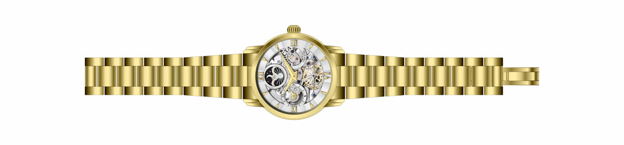 INVICTA Objet D Art Lady 42mm Stainless Steel Gold Silver dial Z-2031 (Nickel) Automatic , Band Material: Stainless Steel, Band Tone: Gold, Band Size [mm]: 22, Band Length [mm]: 200, Buckle Type: Butterfly , Crown Type : Push, Case Material : Stainless Steel, Case Tone : Gold, Case Size (mm) : 42, Case Back : Exhibition, Material of Hands : Metal, Color of Hands : Gold, Crystal Type : Flame Fusion, Bezel Material : None, Dial Material : Metal, Dial Color : Silver, Dial Pattern : Textured Pattern .Purchasing these parts and having a non-authorized repair center open your watch voids all manufacturing warranties. Invicta cannot guarantee the quality standards of an altered timepiece, the standard 3-year limited warranty on Invicta timepieces shall be invalid if the timepiece is serviced at any time by an unauthorized repair center. This includes battery replacements, which must be done at an Invicta authorized repair center in order to maintain the eligibility of the warranty. Please follow the link below to learn more about Invicta's warranty.https://cdn.invictawatch.com/www/files/invicta-warranty-2018.pdf