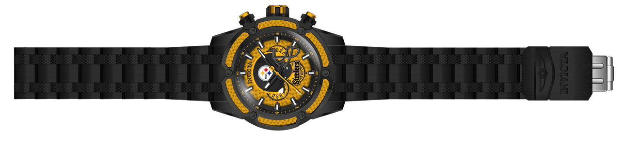 Band Material: Stainless Steel, Band Tone: Black, Band Width: 26MM, Band Length: 198MM, Crown Type: Push, Case Material: Stainless Steel, Case Tone: Black, Case Size [mm]: 52, Color of Hands: Yellow, White, Black, Crystal Type: Flame Fusion, Bezel Material: Glass Fiber, Stainless Steel, Dial Material: Glass Fiber, Metal, Dial Color: Yellow, Red, White, Blue, Black .Purchasing these parts and having a non-authorized repair center open your watch voids all manufacturing warranties. Invicta cannot guarantee the quality standards of an altered timepiece, the standard 3-year limited warranty on Invicta timepieces shall be invalid if the timepiece is serviced at any time by an unauthorized repair center. This includes battery replacements, which must be done at an Invicta authorized repair center in order to maintain the eligibility of the warranty. Please follow the link below to learn more about Invicta's warranty.https://cdn.invictawatch.com/www/files/invicta-warranty-2018.pdf