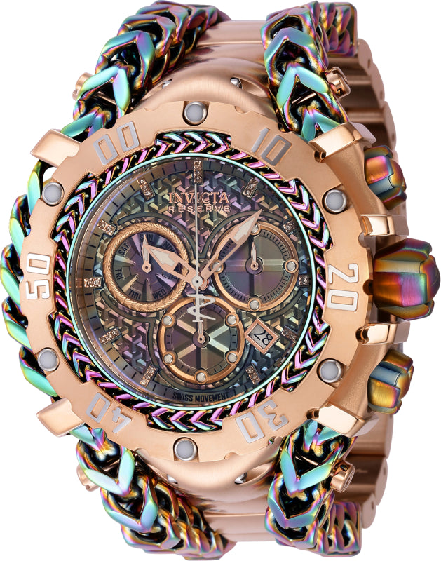 Band Material: Stainless Steel, Band Tone: Iridescent, Rose Gold, Band Width: 41MM, Band Length: 210MM, Crown Type: Screw Down, Case Material: Stainless Steel, Case Tone: Steel, Iridescent, Rose Gold, Case Size [mm]: 58.30, Color of Hands: Luminous, Rose Gold, Crystal Type: Flame Fusion, Bezel Material: Stainless Steel, Dial Material: Metal, Dial Color: Iridescent, Rose Gold .Purchasing these parts and having a non-authorized repair center open your watch voids all manufacturing warranties. Invicta cannot guarantee the quality standards of an altered timepiece, the standard 3-year limited warranty on Invicta timepieces shall be invalid if the timepiece is serviced at any time by an unauthorized repair center. This includes battery replacements, which must be done at an Invicta authorized repair center in order to maintain the eligibility of the warranty. Please follow the link below to learn more about Invicta's warranty.https://cdn.invictawatch.com/www/files/invicta-warranty-2018.pdf