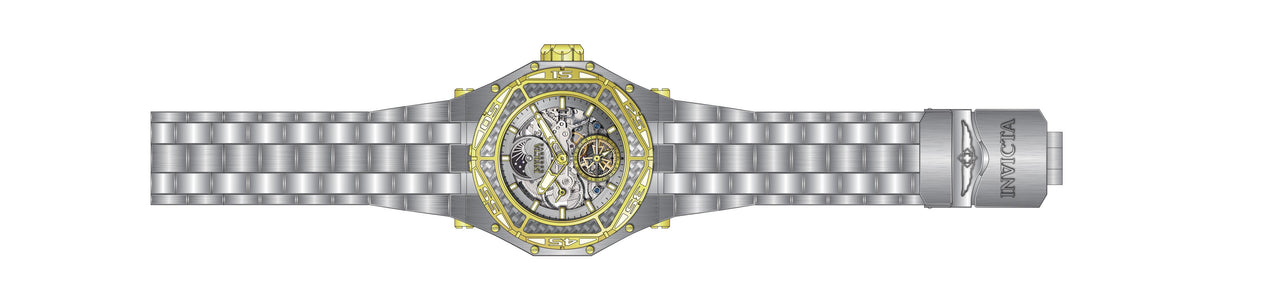 Band Material: Stainless Steel, Band Tone: Steel, Band Width: 32MM, Band Length: 230MM, Crown Type: Screw Down, Case Material: Glass Fiber, Stainless Steel, Case Tone: Steel, Silver, Gold, Case Size [mm]: 54.50, Color of Hands: Luminous, Gold, Crystal Type: Flame Fusion, Bezel Material: Glass Fiber, Stainless Steel, Dial Material: Skeleton, Metal, Dial Color: Gold, Silver .Purchasing these parts and having a non-authorized repair center open your watch voids all manufacturing warranties. Invicta cannot guarantee the quality standards of an altered timepiece, the standard 3-year limited warranty on Invicta timepieces shall be invalid if the timepiece is serviced at any time by an unauthorized repair center. This includes battery replacements, which must be done at an Invicta authorized repair center in order to maintain the eligibility of the warranty. Please follow the link below to learn more about Invicta's warranty.https://cdn.invictawatch.com/www/files/invicta-warranty-2018.pdf