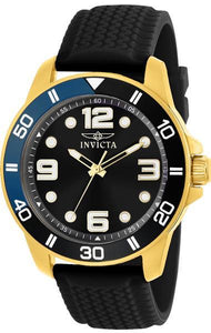 Individual Spare PARTS For Invicta Pro Diver 23235, Band Material Silicone, Band Color Black, Band Width 22 MM, Band Length 200 MM, Buckle Type Buckle, Clasp Type Buckle, Crown Type Push, Case Material Stainless Steel, Case Tone Gold, Case Size (mm) 45, Case Back Solid, Material of Hands Metal, Color of Hands White, Gold, Crystal Type Flame Fusion, Bezel Material Stainless Steel, Aluminum, Dial Material Metal, Dial Color Blue, Dial Pattern SunrayPurchasing these parts and having a non-authorized repair center open your watch voids all manufacturing warranties. Invicta cannot guarantee the quality standards of an altered timepiece, the standard 3-year limited warranty on Invicta timepieces shall be invalid if the timepiece is serviced at any time by an unauthorized repair center. This includes battery replacements, which must be done at an Invicta authorized repair center in order to maintain the eligibility of the warranty. Please follow the link below to learn more about Invicta's warranty.https://cdn.invictawatch.com/www/files/invicta-warranty-2018.pdf