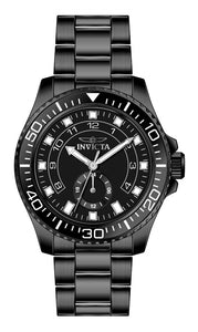 Band Material: Stainless Steel, Band Tone: Black, Band Width: 22MM, Band Length: 186MM, Crown Type: Push, Case Material: Stainless Steel, Case Tone: Black, Case Size [mm]: 44, Case Back: Solid, Material of Hands: Brass, Color of Hands: Silver,Luminous, Crystal Type: Mineral, Bezel Material: Aluminum, Dial Material: Brass, Dial Color: Black, Dial Pattern: None .Purchasing these parts and having a non-authorized repair center open your watch voids all manufacturing warranties. Invicta cannot guarantee the quality standards of an altered timepiece, the standard 3-year limited warranty on Invicta timepieces shall be invalid if the timepiece is serviced at any time by an unauthorized repair center. This includes battery replacements, which must be done at an Invicta authorized repair center in order to maintain the eligibility of the warranty. Please follow the link below to learn more about Invicta's warranty.https://cdn.invictawatch.com/www/files/invicta-warranty-2018.pdf
