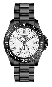 Band Material: Stainless Steel, Band Tone: Black, Band Width: 22MM, Band Length: 186MM, Crown Type: Push, Case Material: Stainless Steel, Case Tone: Black, Case Size [mm]: 44, Case Back: Solid, Material of Hands: Brass, Color of Hands: Black,Luminous, Crystal Type: Mineral, Bezel Material: Aluminum, Dial Material: Brass, Dial Color: Silver, Dial Pattern: None .Purchasing these parts and having a non-authorized repair center open your watch voids all manufacturing warranties. Invicta cannot guarantee the quality standards of an altered timepiece, the standard 3-year limited warranty on Invicta timepieces shall be invalid if the timepiece is serviced at any time by an unauthorized repair center. This includes battery replacements, which must be done at an Invicta authorized repair center in order to maintain the eligibility of the warranty. Please follow the link below to learn more about Invicta's warranty.https://cdn.invictawatch.com/www/files/invicta-warranty-2018.pdf