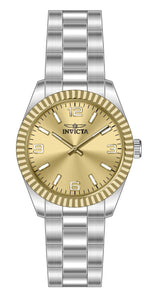 Band Material: Stainless Steel, Band Tone: Steel, Band Width: 22MM, Band Length: 176MM, Crown Type: Push, Case Material: Stainless Steel, Case Tone: Gold,Steel, Case Size [mm]: 43, Case Back: Solid, Material of Hands: Brass, Color of Hands: Gold,Luminous, Crystal Type: Mineral, Bezel Material: Stainless Steel, Dial Material: Brass, Dial Color: Gold, Dial Pattern: Sun-ray Finish .Purchasing these parts and having a non-authorized repair center open your watch voids all manufacturing warranties. Invicta cannot guarantee the quality standards of an altered timepiece, the standard 3-year limited warranty on Invicta timepieces shall be invalid if the timepiece is serviced at any time by an unauthorized repair center. This includes battery replacements, which must be done at an Invicta authorized repair center in order to maintain the eligibility of the warranty. Please follow the link below to learn more about Invicta's warranty.https://cdn.invictawatch.com/www/files/invicta-warranty-2018.pdf