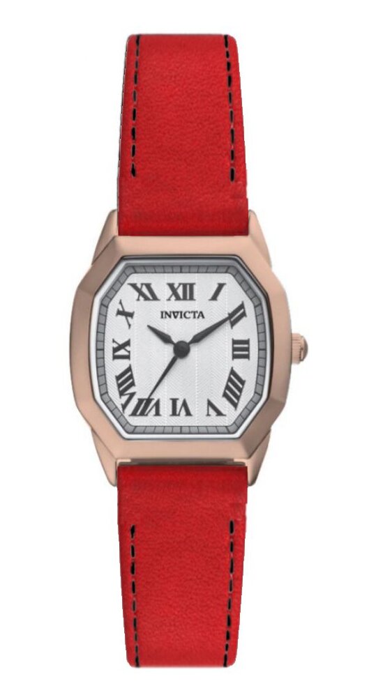 Band Material: Leather, Band Tone: Red, Band Width: 16MM, Band Length: 198MM, Crown Type: Push, Case Material: Stainless Steel, Case Tone: Rose Gold, Case Size [mm]: 27, Case Back: Solid, Material of Hands: Brass, Color of Hands: Black, Crystal Type: Mineral, Bezel Material: None, Dial Material: Brass, Dial Color: Silver, Dial Pattern: Embossed pattern .Purchasing these parts and having a non-authorized repair center open your watch voids all manufacturing warranties. Invicta cannot guarantee the quality standards of an altered timepiece, the standard 3-year limited warranty on Invicta timepieces shall be invalid if the timepiece is serviced at any time by an unauthorized repair center. This includes battery replacements, which must be done at an Invicta authorized repair center in order to maintain the eligibility of the warranty. Please follow the link below to learn more about Invicta's warranty.https://cdn.invictawatch.com/www/files/invicta-warranty-2018.pdf