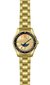 INVICTA Pro Diver Swiss Made Lady 34mm Stainless Steel Gold Gold dial 788 Quartz , Band Material: Stainless Steel, Band Tone: Gold, Band Size [mm]: 16, Band Length [mm]: 195, Buckle Type: Fold over safety , Crown Type : Push, Case Material : Stainless Steel, Case Tone : Gold, Case Size (mm) : 34, Case Back : Solid, Material of Hands : Metal, Color of Hands : Gold,Luminous, Crystal Type : Flame Fusion, Bezel Material : Stainless Steel, Dial Material : Mother of Pearl, Dial Color : Gold, Dial Pattern : None .Purchasing these parts and having a non-authorized repair center open your watch voids all manufacturing warranties. Invicta cannot guarantee the quality standards of an altered timepiece, the standard 3-year limited warranty on Invicta timepieces shall be invalid if the timepiece is serviced at any time by an unauthorized repair center. This includes battery replacements, which must be done at an Invicta authorized repair center in order to maintain the eligibility of the warranty. Please follow the link below to learn more about Invicta's warranty.https://cdn.invictawatch.com/www/files/invicta-warranty-2018.pdf