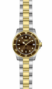 INVICTA Pro Diver Lady 36mm Stainless Steel Gold + Steel Desert Sand dial NH35A Automatic , Band Material: Stainless Steel, Band Tone: Steel,Gold, Band Size [mm]: 18, Band Length [mm]: 190, Buckle Type: Fold over safety , Crown Type : Screw Down, Case Material : Stainless Steel, Case Tone : Gold,Steel, Case Size (mm) : 36, Case Back : Exhibition, Material of Hands : Metal, Color of Hands : Gold,Luminous, Crystal Type : Mineral, Bezel Material : Stainless Steel, Dial Material : Metal, Dial Color : Desert Sand, Dial Pattern : Sun-ray Finish .Purchasing these parts and having a non-authorized repair center open your watch voids all manufacturing warranties. Invicta cannot guarantee the quality standards of an altered timepiece, the standard 3-year limited warranty on Invicta timepieces shall be invalid if the timepiece is serviced at any time by an unauthorized repair center. This includes battery replacements, which must be done at an Invicta authorized repair center in order to maintain the eligibility of the warranty. Please follow the link below to learn more about Invicta's warranty.https://cdn.invictawatch.com/www/files/invicta-warranty-2018.pdf