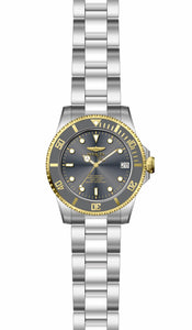 INVICTA Pro Diver Lady 36mm Stainless Steel Gold + Steel Grey dial NH35A Automatic , Band Material: Stainless Steel, Band Tone: Steel, Band Size [mm]: 18, Band Length [mm]: 190, Buckle Type: Fold over safety , Crown Type : Screw Down, Case Material : Stainless Steel, Case Tone : Gold,Steel, Case Size (mm) : 36, Case Back : Exhibition, Material of Hands : Metal, Color of Hands : Gold,Luminous, Crystal Type : Mineral, Bezel Material : Stainless Steel, Dial Material : Metal, Dial Color : Grey, Dial Pattern : Sun-ray Finish .Purchasing these parts and having a non-authorized repair center open your watch voids all manufacturing warranties. Invicta cannot guarantee the quality standards of an altered timepiece, the standard 3-year limited warranty on Invicta timepieces shall be invalid if the timepiece is serviced at any time by an unauthorized repair center. This includes battery replacements, which must be done at an Invicta authorized repair center in order to maintain the eligibility of the warranty. Please follow the link below to learn more about Invicta's warranty.https://cdn.invictawatch.com/www/files/invicta-warranty-2018.pdf