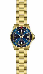 INVICTA Pro Diver Lady 36mm Stainless Steel Gold Blue dial NH35A Automatic , Band Material: Stainless Steel, Band Tone: Gold, Band Size [mm]: 18, Band Length [mm]: 195, Buckle Type: Fold over safety , Crown Type : Screw Down, Case Material : Stainless Steel, Case Tone : Gold, Case Size (mm) : 36, Case Back : Exhibition, Material of Hands : Metal, Color of Hands : Gold,Luminous, Crystal Type : Mineral, Bezel Material : Stainless Steel, Dial Material : Metal, Dial Color : Blue, Dial Pattern : Sun-ray Finish .Purchasing these parts and having a non-authorized repair center open your watch voids all manufacturing warranties. Invicta cannot guarantee the quality standards of an altered timepiece, the standard 3-year limited warranty on Invicta timepieces shall be invalid if the timepiece is serviced at any time by an unauthorized repair center. This includes battery replacements, which must be done at an Invicta authorized repair center in order to maintain the eligibility of the warranty. Please follow the link below to learn more about Invicta's warranty.https://cdn.invictawatch.com/www/files/invicta-warranty-2018.pdf