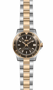 INVICTA Pro Diver Lady 36mm Stainless Steel Rose Gold + Steel Dark Brown dial NH35A Automatic , Band Material: Stainless Steel, Band Tone: Steel,Rose Gold, Band Size [mm]: 18, Band Length [mm]: 195, Buckle Type: Fold over safety , Crown Type : Screw Down, Case Material : Stainless Steel, Case Tone : Rose Gold,Steel, Case Size (mm) : 36, Case Back : Exhibition, Material of Hands : Metal, Color of Hands : Rose Gold,Luminous, Crystal Type : Mineral, Bezel Material : Stainless Steel, Dial Material : Metal, Dial Color : Dark Brown, Dial Pattern : Sun-ray Finish .Purchasing these parts and having a non-authorized repair center open your watch voids all manufacturing warranties. Invicta cannot guarantee the quality standards of an altered timepiece, the standard 3-year limited warranty on Invicta timepieces shall be invalid if the timepiece is serviced at any time by an unauthorized repair center. This includes battery replacements, which must be done at an Invicta authorized repair center in order to maintain the eligibility of the warranty. Please follow the link below to learn more about Invicta's warranty.https://cdn.invictawatch.com/www/files/invicta-warranty-2018.pdf