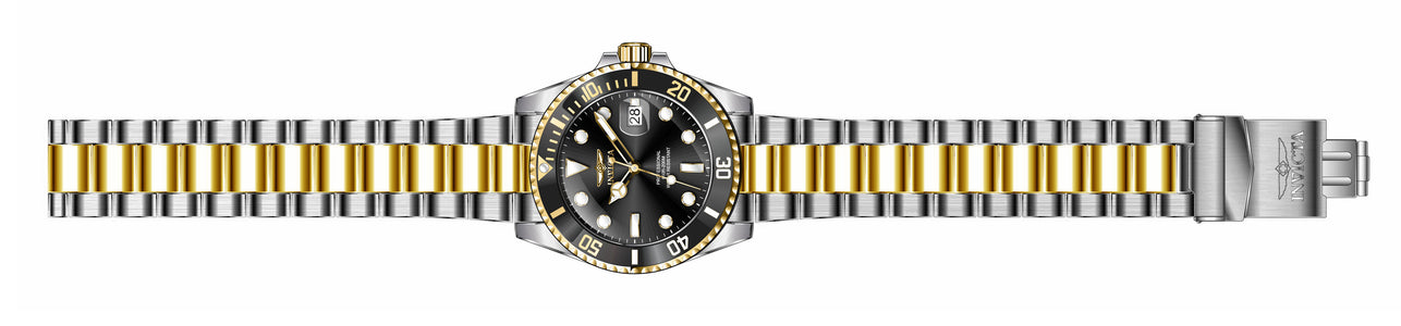 INVICTA Pro Diver Lady 38mm Stainless Steel Steel Black dial PC32 Quartz , Band Material: Stainless Steel, Band Tone: Steel,Gold, Band Size [mm]: 20, Band Length [mm]: 179.5, Buckle Type: Fold over safety , Crown Type : Screw Down, Case Material : Stainless Steel, Case Tone : Steel, Case Size (mm) : 38, Case Back : Solid, Material of Hands : Metal, Color of Hands : Gold, Crystal Type : Mineral, Bezel Material : Stainless Steel, Dial Material : Metal, Dial Color : Black, Dial Pattern : Sun-ray Finish .Purchasing these parts and having a non-authorized repair center open your watch voids all manufacturing warranties. Invicta cannot guarantee the quality standards of an altered timepiece, the standard 3-year limited warranty on Invicta timepieces shall be invalid if the timepiece is serviced at any time by an unauthorized repair center. This includes battery replacements, which must be done at an Invicta authorized repair center in order to maintain the eligibility of the warranty. Please follow the link below to learn more about Invicta's warranty.https://cdn.invictawatch.com/www/files/invicta-warranty-2018.pdf