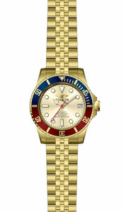 INVICTA Pro Diver Lady 36mm Stainless Steel Gold Gold dial NH35A Automatic , Band Material: Stainless Steel, Band Tone: Gold, Band Size [mm]: 18, Band Length [mm]: 200, Buckle Type: Fold over safety , Crown Type : Screw Down, Case Material : Stainless Steel, Case Tone : Gold, Case Size (mm) : 36, Case Back : Exhibition, Material of Hands : Metal, Color of Hands : Gold,Luminous, Crystal Type : Mineral, Bezel Material : Stainless Steel, Dial Material : Metal, Dial Color : Gold, Dial Pattern : Sun-ray Finish .Purchasing these parts and having a non-authorized repair center open your watch voids all manufacturing warranties. Invicta cannot guarantee the quality standards of an altered timepiece, the standard 3-year limited warranty on Invicta timepieces shall be invalid if the timepiece is serviced at any time by an unauthorized repair center. This includes battery replacements, which must be done at an Invicta authorized repair center in order to maintain the eligibility of the warranty. Please follow the link below to learn more about Invicta's warranty.https://cdn.invictawatch.com/www/files/invicta-warranty-2018.pdf