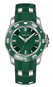 Band Material: Stainless Steel,Silicone, Band Tone: Steel,Green, Band Width: 20MM, Band Length: 190MM, Crown Type: Push, Case Material: Stainless Steel, Case Tone: Steel, Case Size [mm]: 38, Case Back: Solid, Material of Hands: Metal, Color of Hands: Silver, Crystal Type: Flame Fusion, Bezel Material: Stainless Steel,Aluminum, Dial Material: Metal, Dial Color: Green .Purchasing these parts and having a non-authorized repair center open your watch voids all manufacturing warranties. Invicta cannot guarantee the quality standards of an altered timepiece, the standard 3-year limited warranty on Invicta timepieces shall be invalid if the timepiece is serviced at any time by an unauthorized repair center. This includes battery replacements, which must be done at an Invicta authorized repair center in order to maintain the eligibility of the warranty. Please follow the link below to learn more about Invicta's warranty.https://cdn.invictawatch.com/www/files/invicta-warranty-2018.pdf