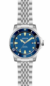 INVICTA Pro Diver Men 44mm Stainless Steel Steel Blue dial NH35A Automatic , Band Material: Stainless Steel, Band Tone: Steel, Band Size [mm]: 22, Band Length [mm]: 215, Buckle Type: Fold over safety , Crown Type : Push, Case Material : Stainless Steel, Case Tone : Steel, Case Size (mm) : 44, Case Back : Exhibition, Material of Hands : Metal, Color of Hands : Silver,Luminous, Crystal Type : Mineral, Bezel Material : Stainless Steel, Dial Material : Metal, Dial Color : Blue, Dial Pattern : None .Purchasing these parts and having a non-authorized repair center open your watch voids all manufacturing warranties. Invicta cannot guarantee the quality standards of an altered timepiece, the standard 3-year limited warranty on Invicta timepieces shall be invalid if the timepiece is serviced at any time by an unauthorized repair center. This includes battery replacements, which must be done at an Invicta authorized repair center in order to maintain the eligibility of the warranty. Please follow the link below to learn more about Invicta's warranty.https://cdn.invictawatch.com/www/files/invicta-warranty-2018.pdf