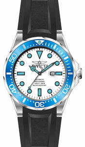 INVICTA Pro Diver Men 60mm Stainless Steel Steel White dial NH35A Automatic , Band Material: Silicone, Band Tone: Black, Band Size [mm]: 28, Band Length [mm]: 235, Buckle Type: Buckle , Crown Type : Screw Down, Case Material : Stainless Steel, Case Tone : Steel, Case Size (mm) : 60, Case Back : Exhibition, Material of Hands : Metal, Color of Hands : Black,Luminous, Crystal Type : Mineral, Bezel Material : Stainless Steel, Dial Material : Metal, Dial Color : White, Dial Pattern : None .Purchasing these parts and having a non-authorized repair center open your watch voids all manufacturing warranties. Invicta cannot guarantee the quality standards of an altered timepiece, the standard 3-year limited warranty on Invicta timepieces shall be invalid if the timepiece is serviced at any time by an unauthorized repair center. This includes battery replacements, which must be done at an Invicta authorized repair center in order to maintain the eligibility of the warranty. Please follow the link below to learn more about Invicta's warranty.https://cdn.invictawatch.com/www/files/invicta-warranty-2018.pdf