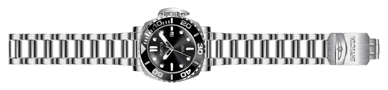 INVICTA Pro Diver Men 48mm Stainless Steel Steel Black dial NH35 Automatic , Band Material: Stainless Steel, Band Tone: Steel, Band Size [mm]: 24, Band Length [mm]: 189, Buckle Type: Fold over safety , Crown Type : Push, Case Material : Stainless Steel, Case Tone : Steel, Case Size (mm) : 48, Case Back : Exhibition, Material of Hands : Metal, Color of Hands : White,Silver, Crystal Type : Flame Fusion, Bezel Material : Stainless Steel, Dial Material : Metal, Dial Color : Black, Dial Pattern : Sun-ray Finish .Purchasing these parts and having a non-authorized repair center open your watch voids all manufacturing warranties. Invicta cannot guarantee the quality standards of an altered timepiece, the standard 3-year limited warranty on Invicta timepieces shall be invalid if the timepiece is serviced at any time by an unauthorized repair center. This includes battery replacements, which must be done at an Invicta authorized repair center in order to maintain the eligibility of the warranty. Please follow the link below to learn more about Invicta's warranty.https://cdn.invictawatch.com/www/files/invicta-warranty-2018.pdf