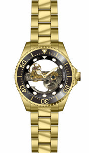 INVICTA Pro Diver Men 47mm Stainless Steel Gold Black dial LG0802B Automatic , Band Material: Stainless Steel, Band Tone: Gold, Band Size [mm]: 22, Band Length [mm]: 215, Buckle Type: Fold over safety , Crown Type : Push, Case Material : Stainless Steel, Case Tone : Gold, Case Size (mm) : 47, Case Back : Exhibition, Material of Hands : Metal, Color of Hands : Gold,Luminous, Crystal Type : Mineral, Bezel Material : Stainless Steel, Dial Material : Metal, Dial Color : Black, Dial Pattern : None .Purchasing these parts and having a non-authorized repair center open your watch voids all manufacturing warranties. Invicta cannot guarantee the quality standards of an altered timepiece, the standard 3-year limited warranty on Invicta timepieces shall be invalid if the timepiece is serviced at any time by an unauthorized repair center. This includes battery replacements, which must be done at an Invicta authorized repair center in order to maintain the eligibility of the warranty. Please follow the link below to learn more about Invicta's warranty.https://cdn.invictawatch.com/www/files/invicta-warranty-2018.pdf