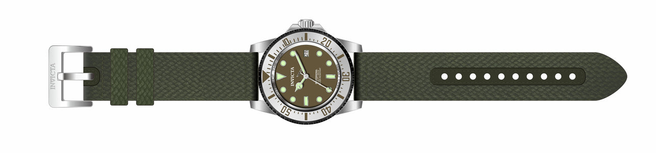 INVICTA Pro Diver Men 44mm Stainless Steel Black + Steel Green dial NH35A Automatic , Band Material: Polyester, Band Tone: Green, Band Size [mm]: 22, Band Length [mm]: 220, Buckle Type: Buckle , Crown Type : Screw Down, Case Material : Stainless Steel, Case Tone : Black,Steel, Case Size (mm) : 44, Case Back : Exhibition, Material of Hands : Metal, Color of Hands : Silver,Luminous, Crystal Type : Flame Fusion, Bezel Material : Stainless Steel, Dial Material : Metal, Dial Color : Green, Dial Pattern : None .Purchasing these parts and having a non-authorized repair center open your watch voids all manufacturing warranties. Invicta cannot guarantee the quality standards of an altered timepiece, the standard 3-year limited warranty on Invicta timepieces shall be invalid if the timepiece is serviced at any time by an unauthorized repair center. This includes battery replacements, which must be done at an Invicta authorized repair center in order to maintain the eligibility of the warranty. Please follow the link below to learn more about Invicta's warranty.https://cdn.invictawatch.com/www/files/invicta-warranty-2018.pdf